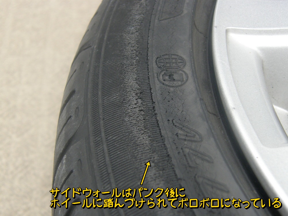 ショルダー部はボロボロになっているけど、これはパンクした後に短距離ではあるが走行したので、その時にホイールで踏んでいた所がボロボロになったんだと思う。