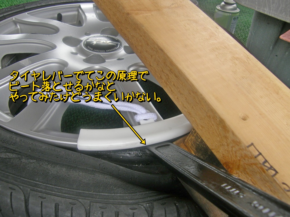 タイヤはぺちゃんこになるのだが、ビートが落ちない。もう少しなのだが。