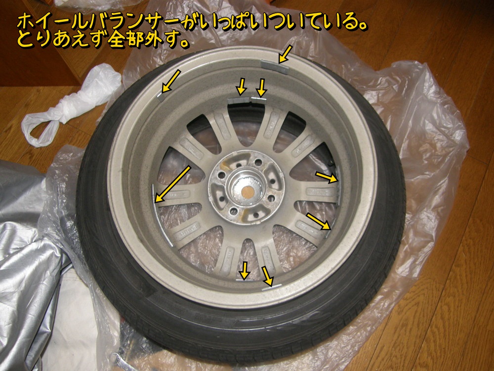 夜にホイールを部屋の中で眺めていた。部屋着で椅子に座りながらゆっくり眺めて色々考えるのは楽しい。そうそう、バランサー外しておこう。