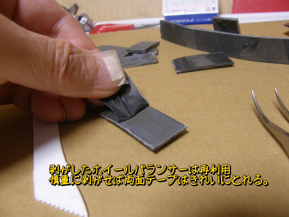 バランサーウェイトはもちろん再利用するので、両面テープを剥がしておく。