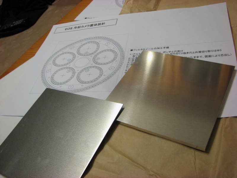 まずはフィルターホイールの製作から。120mm角、厚さ5mmと0.5mmのアルミ板を購入。