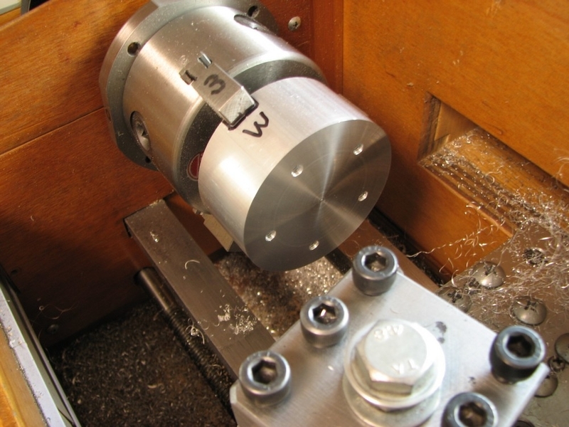 そこにフィルタホイールを取り付け芯出しして、外周と内周を切削。